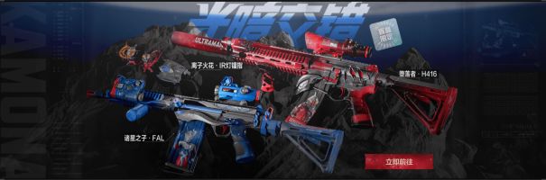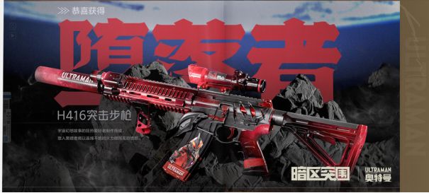 消耗盲盒币即可参与抽取奥特曼联动全新枪械涂装系列【光暗交错】主题军需,有机会获得【诸星之子·FAL】和【堕落者·H416】枪械涂装!