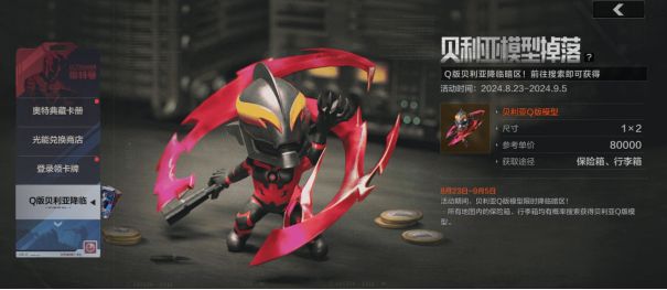 活动期间,在所有地图内的保险箱、行李箱均有概率搜索获得贝利亚的Q版模型!带出后可点亮个人据点收藏!
