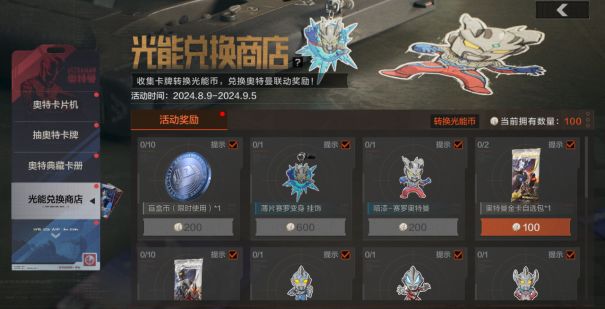 每日登录可获得【光能兑换币】奖励,使用【光能兑换币】可在兑换商店内获取各类奥特曼联动限定奖励!