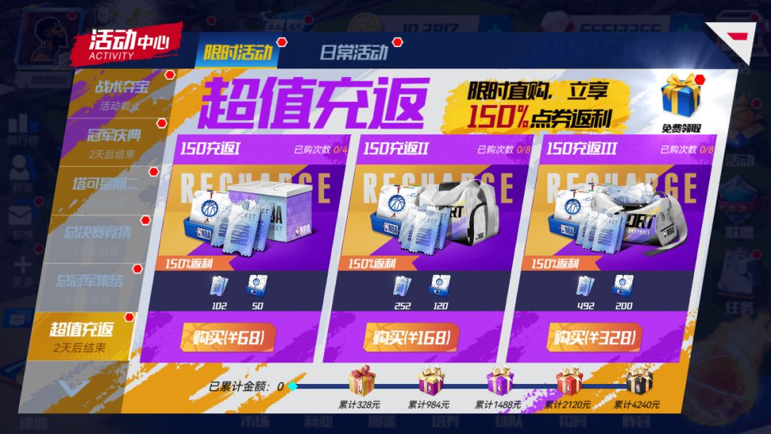 周年庆带来新福利,网页支付中心,限时返利开启,充值68、168、328档位立即获得130%点卡资源!更有【训练计划多选一】和【巨星招募函】打折兑换,【心态进阶课程】和【心态培养课程】增加限购次数!