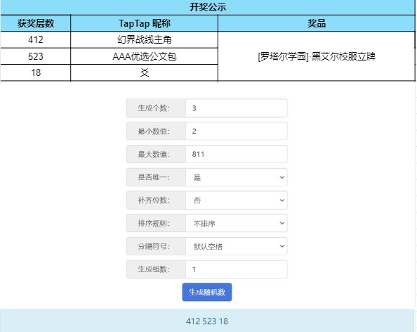 根据开奖结果显示,恭喜以下幸运的玩家们获得奖品: