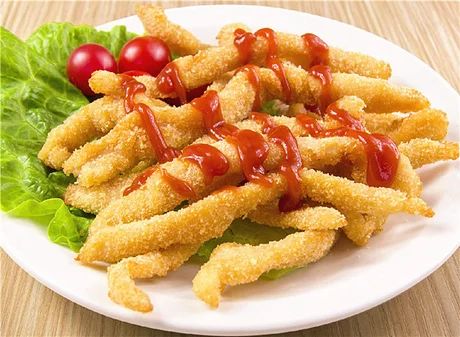 小朋友们,你们想吃炸无骨鸡柳吗?现在我就来教你们制作炸无骨鸡柳。 首先,先准备好食材,无骨鸡柳,番茄酱,酱油,盐,味精。 1.在制作炸无骨鸡柳的过程当中,第一步,在锅中放入油,把无骨鸡柳放入锅中,加入一勺的酱油,进行煎炸。 2.第二步,煎炸两分钟之后,再加入一小勺的盐,还有味精,再进行煎炸, 3.最后一步,煎炸5分钟之后,就可以倒入盘中,进行品尝。 在品尝的时候,还可以加点番茄酱。其实,制作炸无骨鸡柳,就是这样简单。