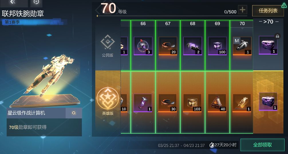 我整理了第一赛季达到70级所有奖励,囊括了大量抽卡道具,高级强化材料,舰长技能宝箱等物品,全方位打造实力舰队。
