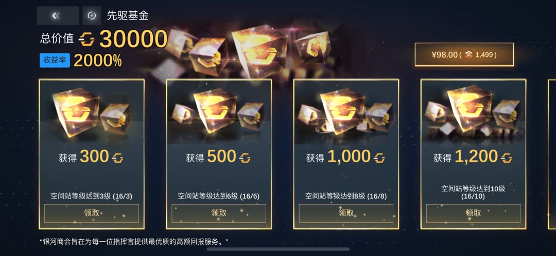 这个礼包其实是解锁高阶任务,不需要额外花费时间,在进行日常任务的同时就可以完成任务。轻轻松松就可以获得大量的稀有部件、资源,简直是白送的奖励了!在我看来这个礼包和月卡是所有礼包里最有性价比的。敲重点,建议购买初级礼包就行了!反正任务随时都能完成,不差那10级。