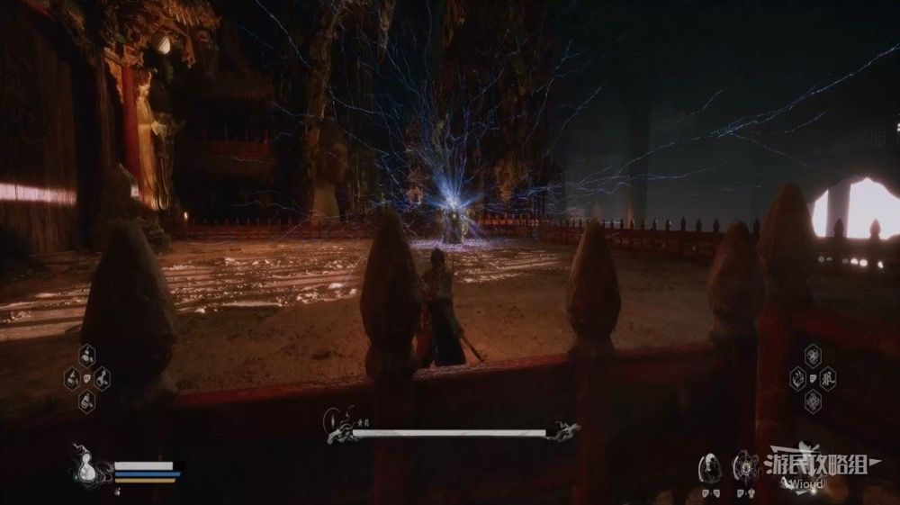 后面需要一直躲避攻击,直到黄眉站立不动,开始从肚子附近爆出大量雷电,这招结束黄眉会解除金身,我们再冲到黄眉旁边开始攻击,黄眉的近战攻击与第一阶段基本相同。
