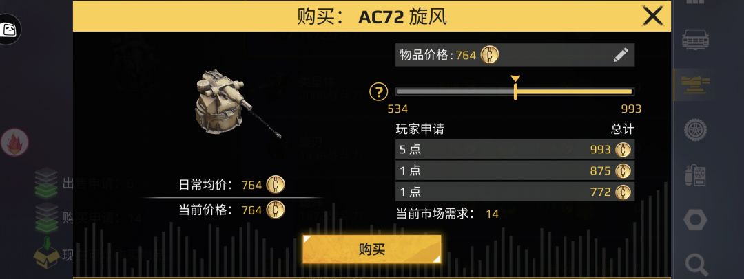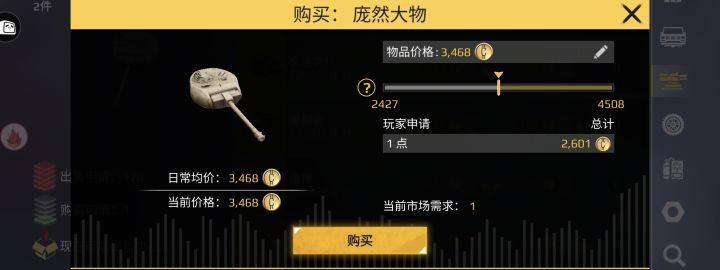3.购买:玩家报价>机器人报价,即玩家申请价格>当前价格。