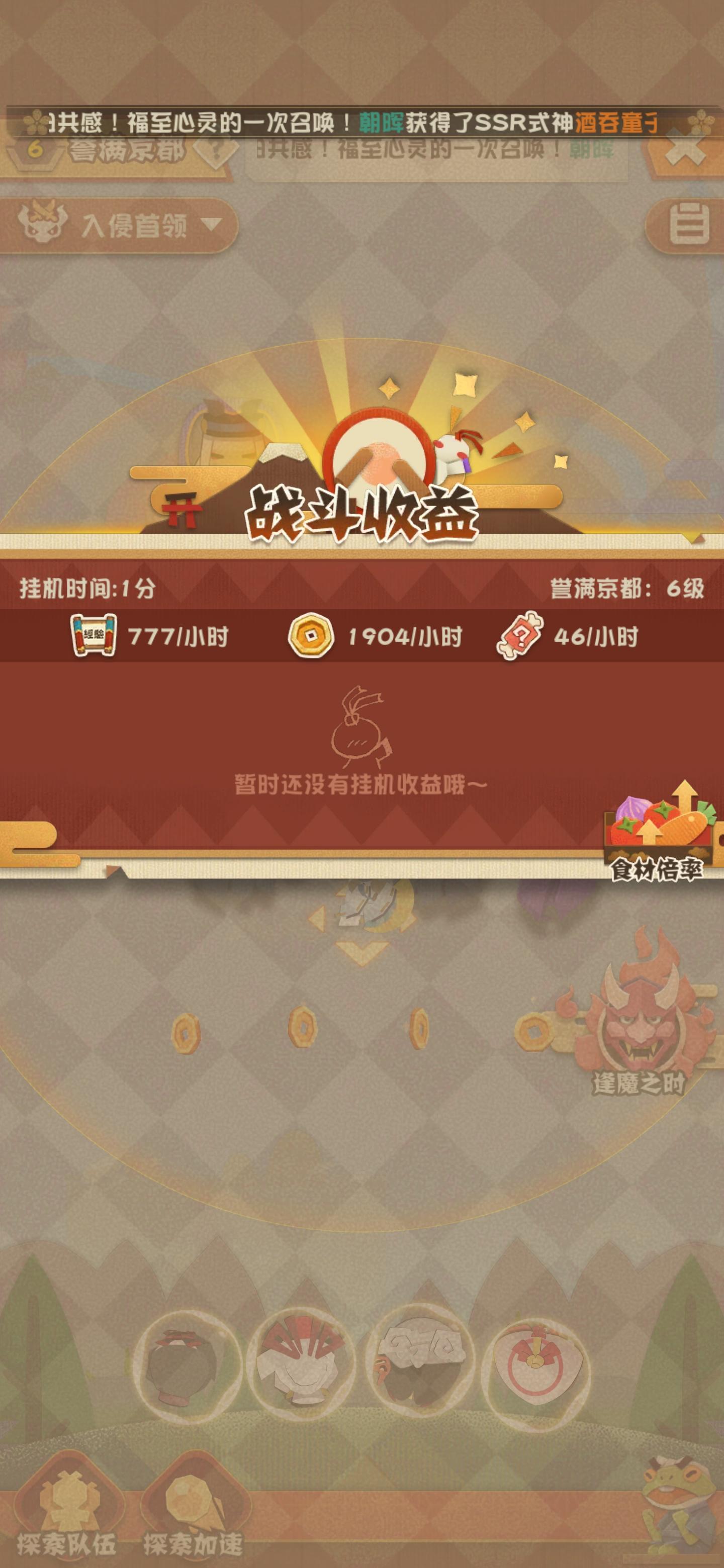 新手32个小任务解锁了熊本熊,但是探索点右下角出来的还是战斗收益,没有更换按钮啊……求解救……