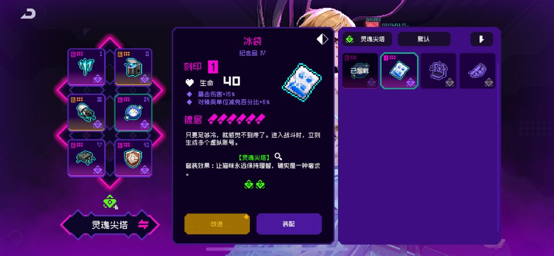5、【灵魂尖塔】可理解为弹幕伤害为独立基础,以冰为主伤,以毒为辅助的流派,可搭配多个角色,但是最佳适配角色仍是是希尔。