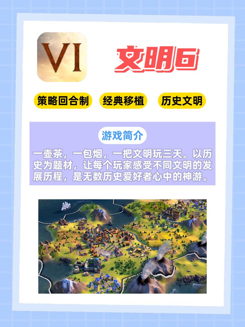 一壶茶🍵,一包烟🚬,一把文明玩三天。⏳以历史为题材,让每个玩家感受不同文明的发展历程,是无数历史爱好者心中的神游👑👑。