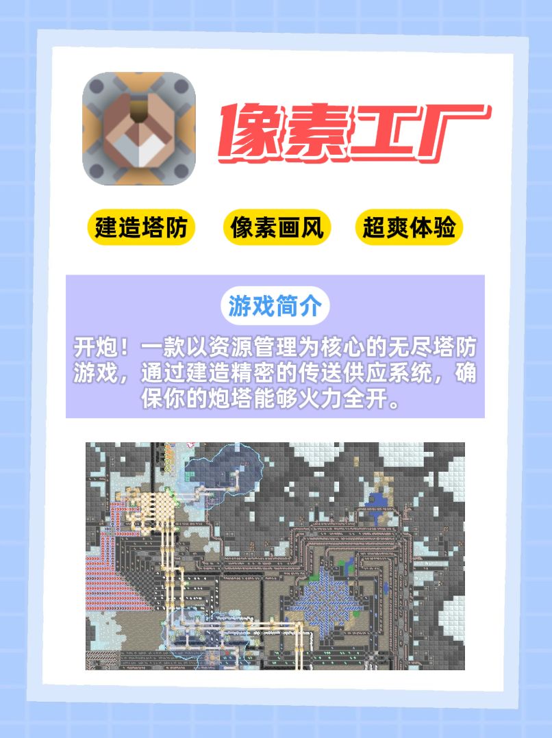 开炮!💥一款以资源管理为核心的无尽塔防🛡️游戏,通过建造精密的传送供应系统,🔄确保你的炮塔能够火力全开。🔥