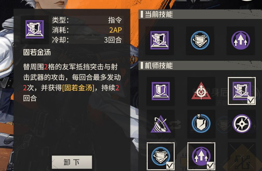 守护者的情况就比较简单了,一个守护者通常拥有1个普通2格护卫技能和1格进阶2格护卫技能(冷却时间3回合),由于效果更好的原因,通常都是只携带1个进阶2格护卫技能,很少会有同时携带两个护卫技能的状况,这样就导致了会有1回合的2格援护空窗期,职能技能让守护者能够额外携带一个普通护卫技能,这样就确保了2格援护能够不间断;甚至于说只依靠职能技能中的护卫技能,不再携带进阶护卫技能,从而携带更多机师技能