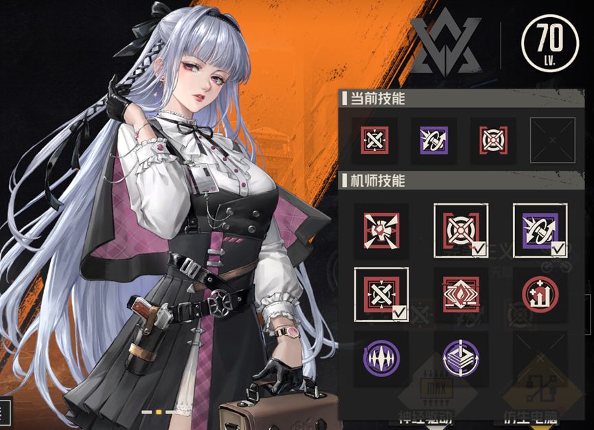 罗娜的技能中战术重启和一鼓作气至关重要,但是有一个缺点是它们的冷却时间无法循环,所以必须携带制式修理这样一个基础维修技能,否则罗娜的维修就会中断,无法每回合都为友军提供维修,这样一来特别关照、战前整备这些优秀的技能就必须舍弃了。职能技能出现之后,罗娜原本制式修理的位置就可以用于携带被动技能了