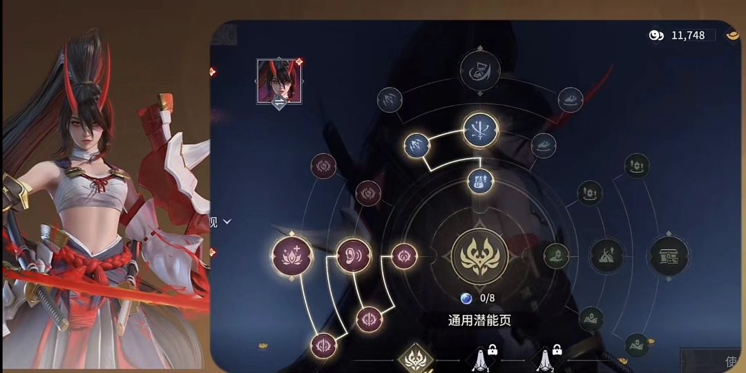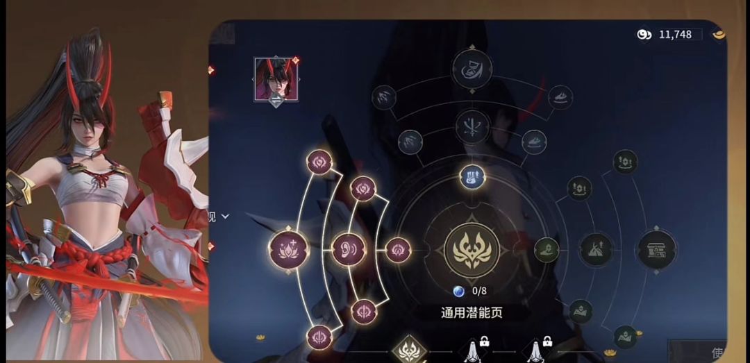 在团队中的妖刀姬手握奥义可以处理更多的局面,一个手持奥义的妖刀姬和没有奥义的妖刀姬是天差地别的,所以在潜能上选择满红一蓝,优先保证奥义充能为最佳。