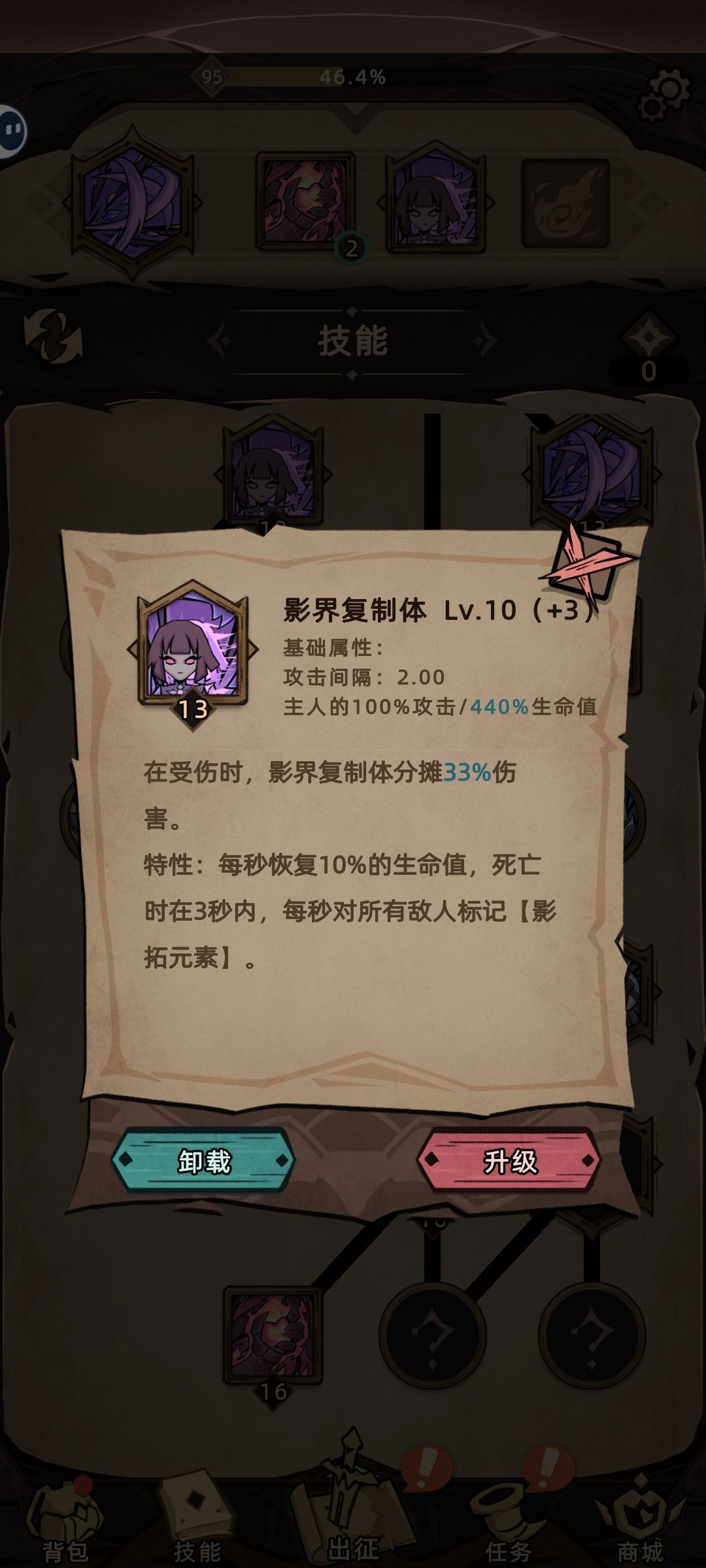 如果还有技能点球剩余,那就把阴影切割升一下吧,把它装备到普攻那里,每两次触发一次真实伤害,虽然实现无敌状态后普攻很少用了,但还是有用的。