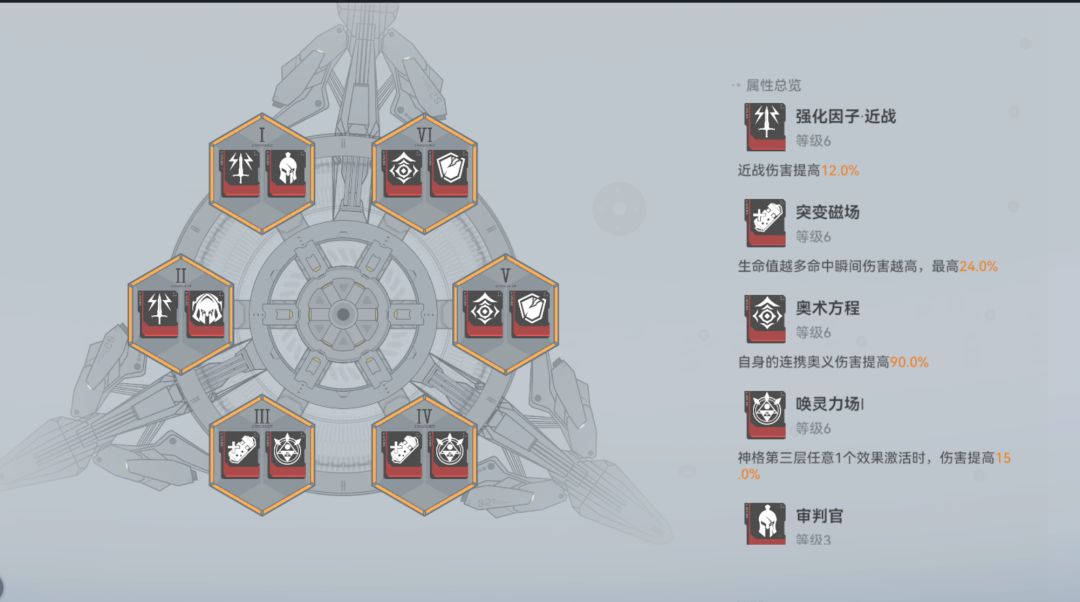 12位置 近战6+审判3+处刑3 34位置 神格6+突变6 56位置 奥义等级6+连携伤害6