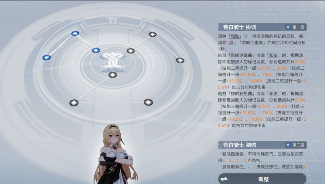 独立伤害增加 被动条获取翻倍 强化模式下减伤 特殊A恢复生命值 演奏模式队友属性伤害增加 独立伤害增加