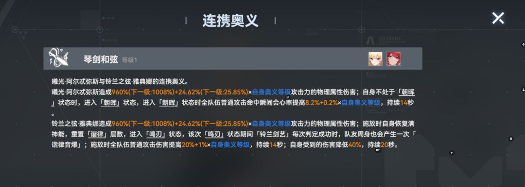 演奏摆烂流:连携中可以在连携CD剩余1秒左右时闪避打断然后释放连携 也可以在第三人奥义增伤后闪避打断后释放连携 如果曦光自己是挂件 那么放完奥义摆烂就完事了