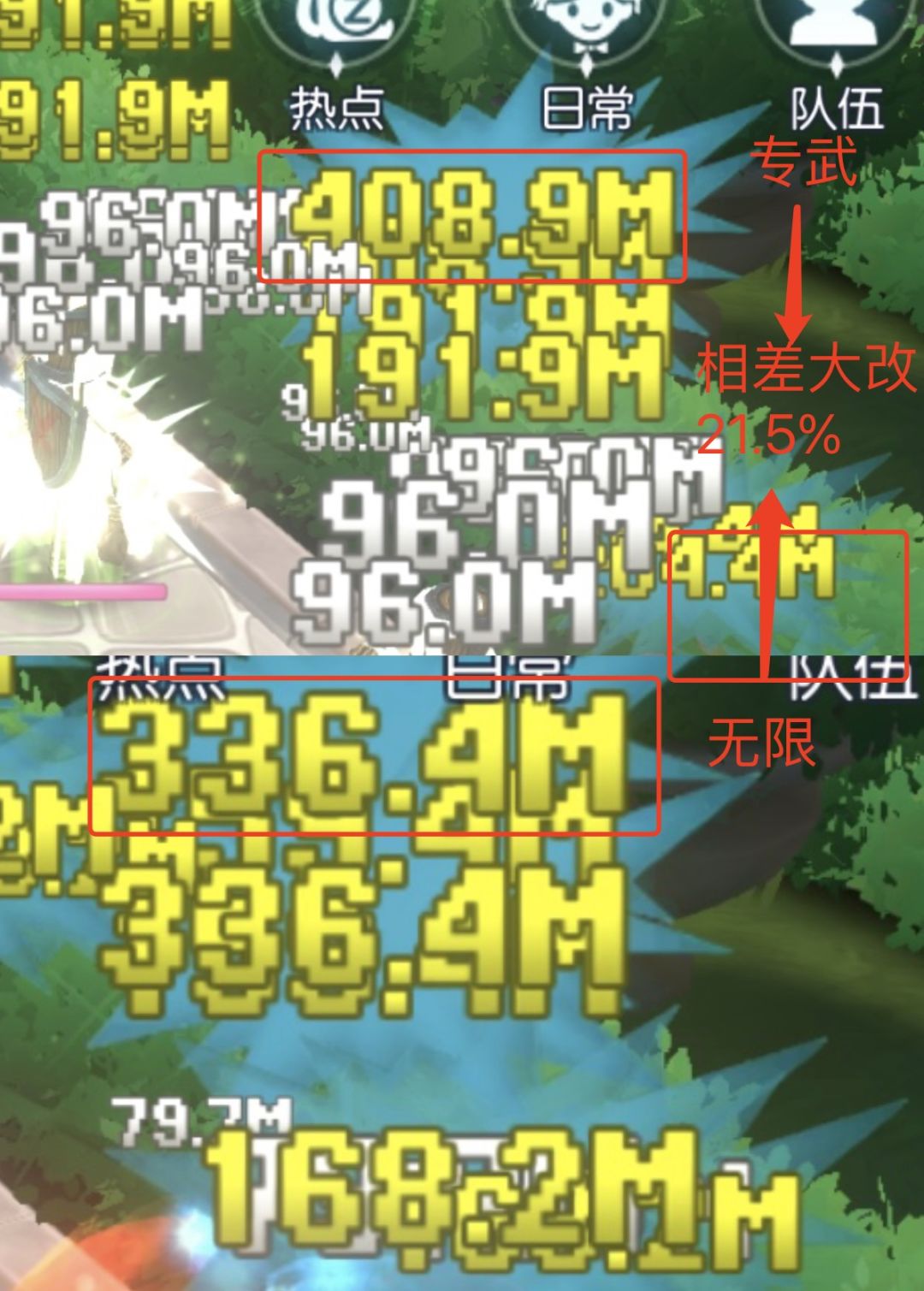 除此之外专武还有大量熊猫豆腐的伤害加成,测试下来与15无限对比,伤害大概差了21.5%左右。