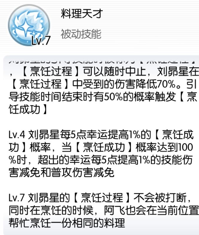 PVE输出需要7星特性,1星时只有50%的几率可以成功完成烹饪,4星时候可以通过幸运的加点将成攻率提高到100%,只有7星特性,可以让阿飞同时出现制作一份一模一样的料理,等于额外释放了一次相同的技能。效率翻倍,对于pve来说等于伤害翻倍。