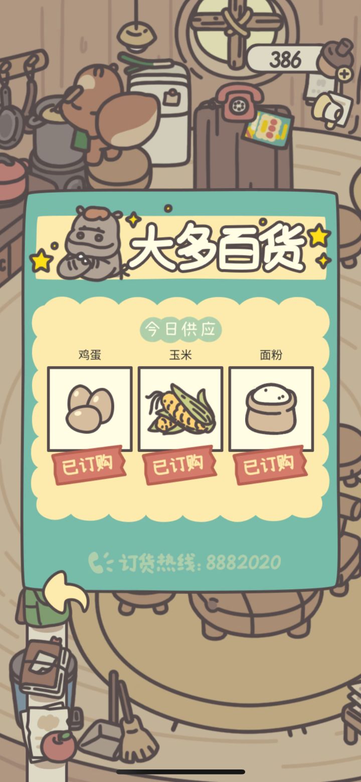 早上采购每日食材食材~发现个小秘决,应该是菜单越丰富,客人触发机制就越高频!这是链锁反应呀,客人越多就会赚到越多的橡子币🤔