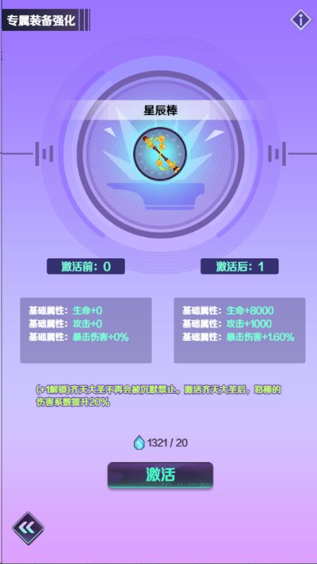 专属装备仅强化一种养成方式,强化材料为不同品质的芯核,0—10级使用太初芯核,11—20级使用升格芯核,21级以后需要使用对应阵营的终极芯核。