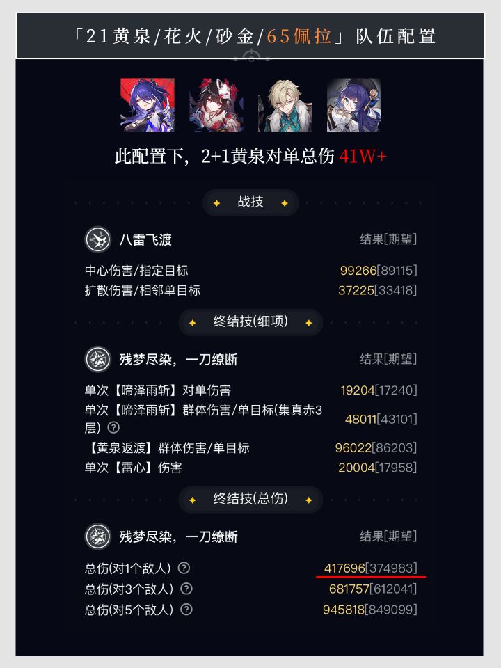 21黄泉/花火/砂金/ 65佩拉对单总伤41W+