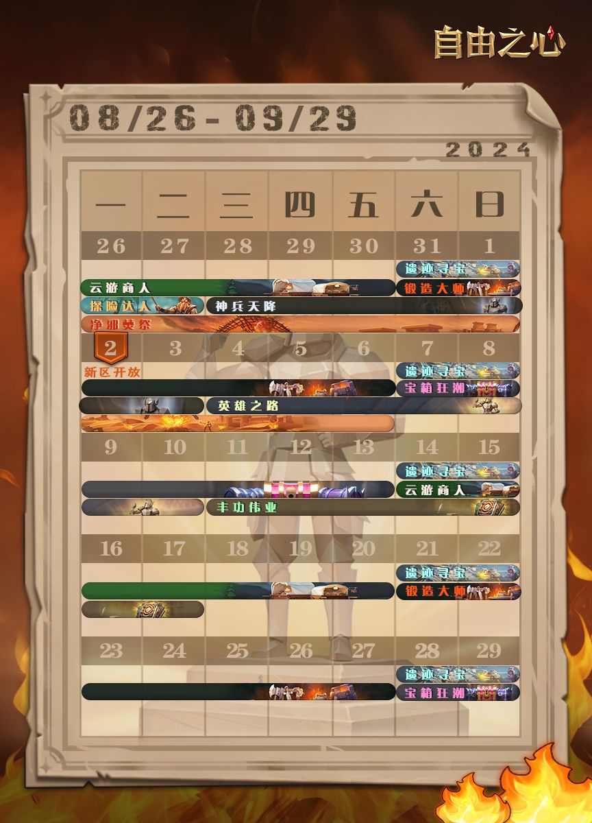 2024/08/26 - 2024/09/29 期间的活动日历,拉拉姆带到!