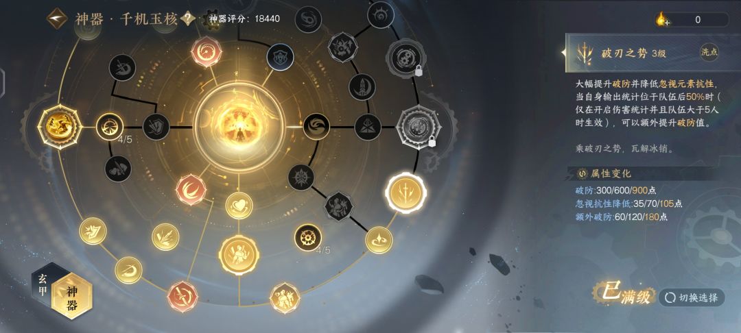 还有就是关于破防流,神器新节点直接给了900破防,数值给足了,不过代价是你的忽视元素抗,看来策划是并不想看到大家搞元破双修