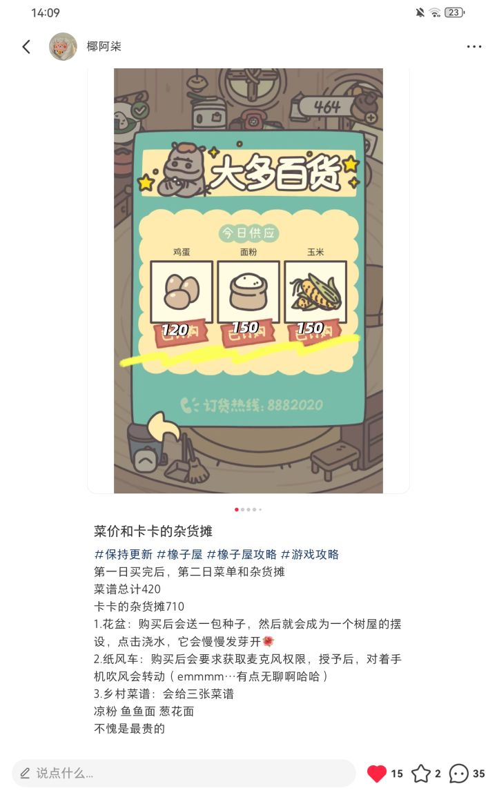 第一日买完后,第二日菜单和杂货摊