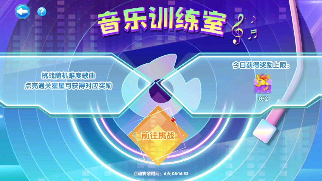 嗨不过瘾怎么办?跟随音乐节奏在训练室体验一把指尖跳舞的感觉!点亮通关星星即可获得对应音符宝箱奖励~