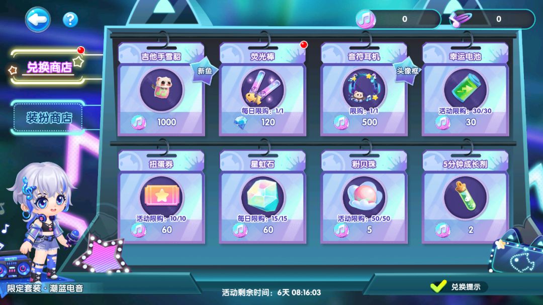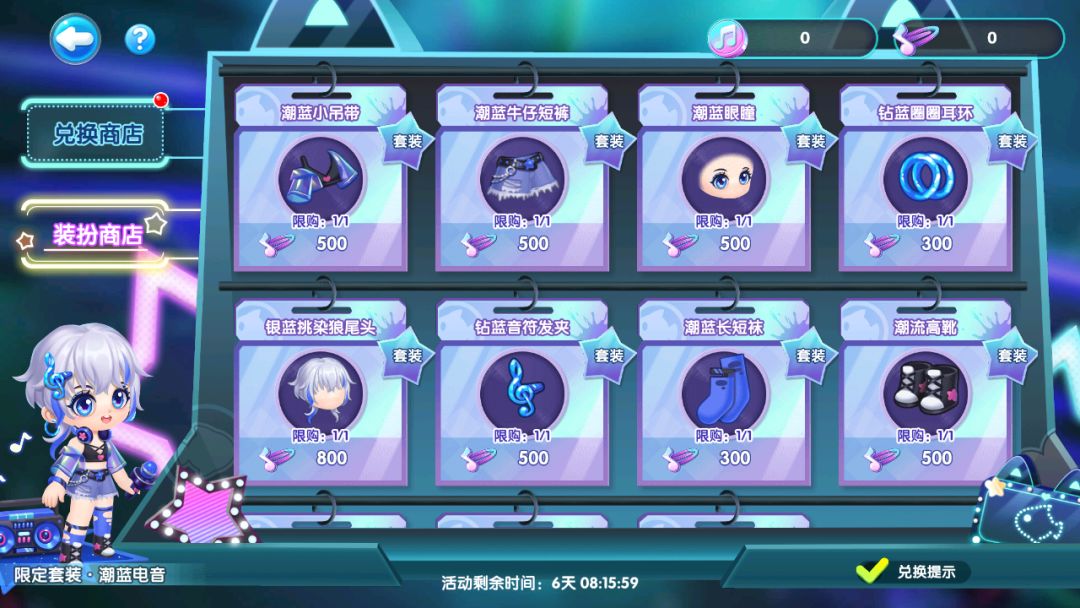 限定装扮“潮蓝电音”火热售卖中,使用音符发夹兑换心仪装扮,音乐节不妨换种风格潮流一把!