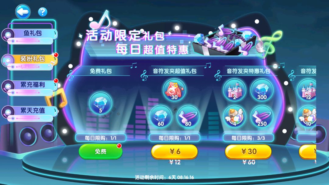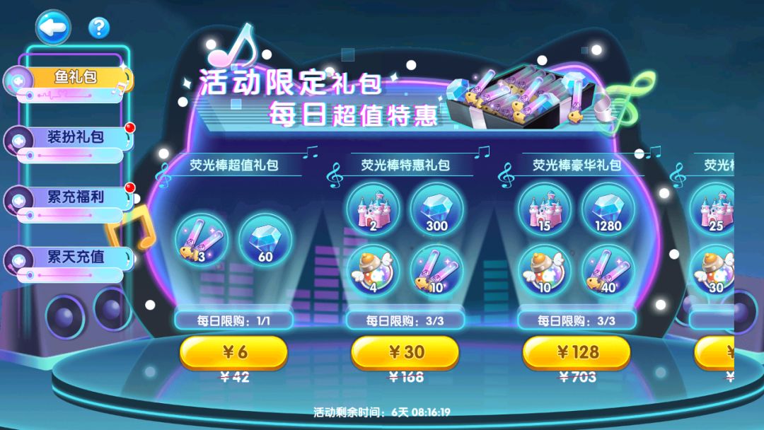 礼包狂欢,舞台惊喜加满!多种礼包尽享超值特惠,快快挑选拿下啦~