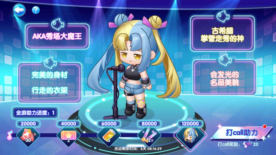 馆长每日有三次机会打call助力,每次打call将获得音符发夹(用于兑换商店兑换奖励),全游进度达到固定档位可领取相应好礼,达成最终进度,游客免费带回水族馆!
