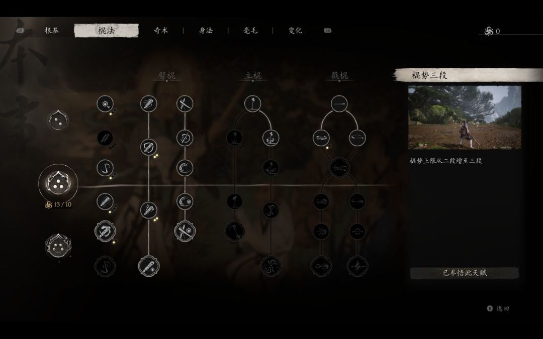 前两章按照这样点基本完全够用,战斗的时候多攒棍势,定身术打出硬直之后接重击可以有效避免重击打空的情况。