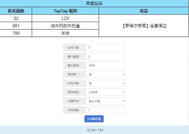 根据开奖结果显示,恭喜以下幸运的玩家们获得奖品: