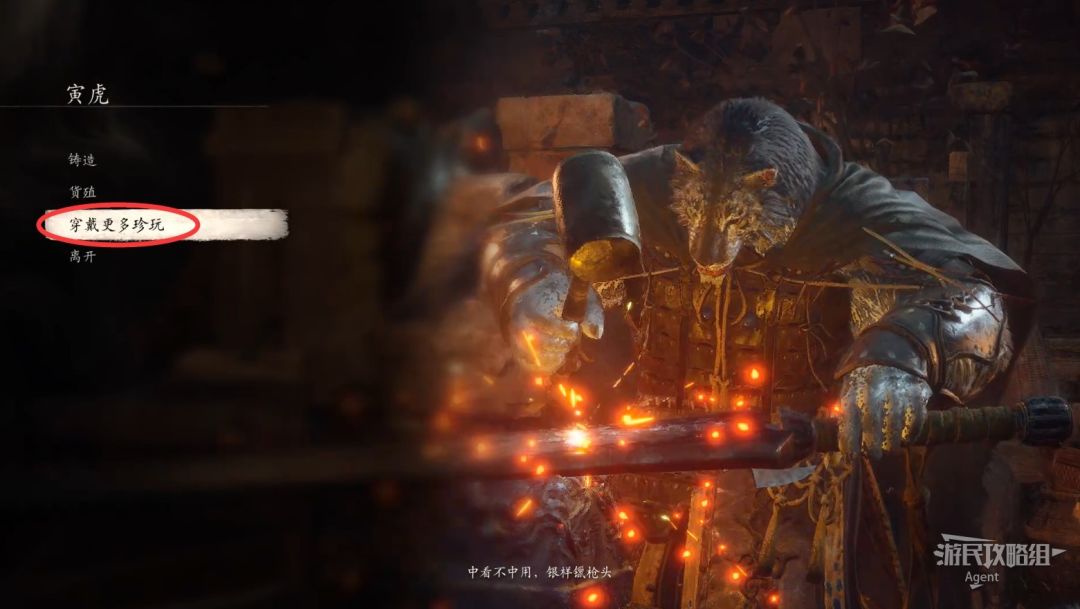 再跟寅虎对话,解锁第三个珍玩(饰品)栏位,并解锁披挂铸造【玄铁套装】。