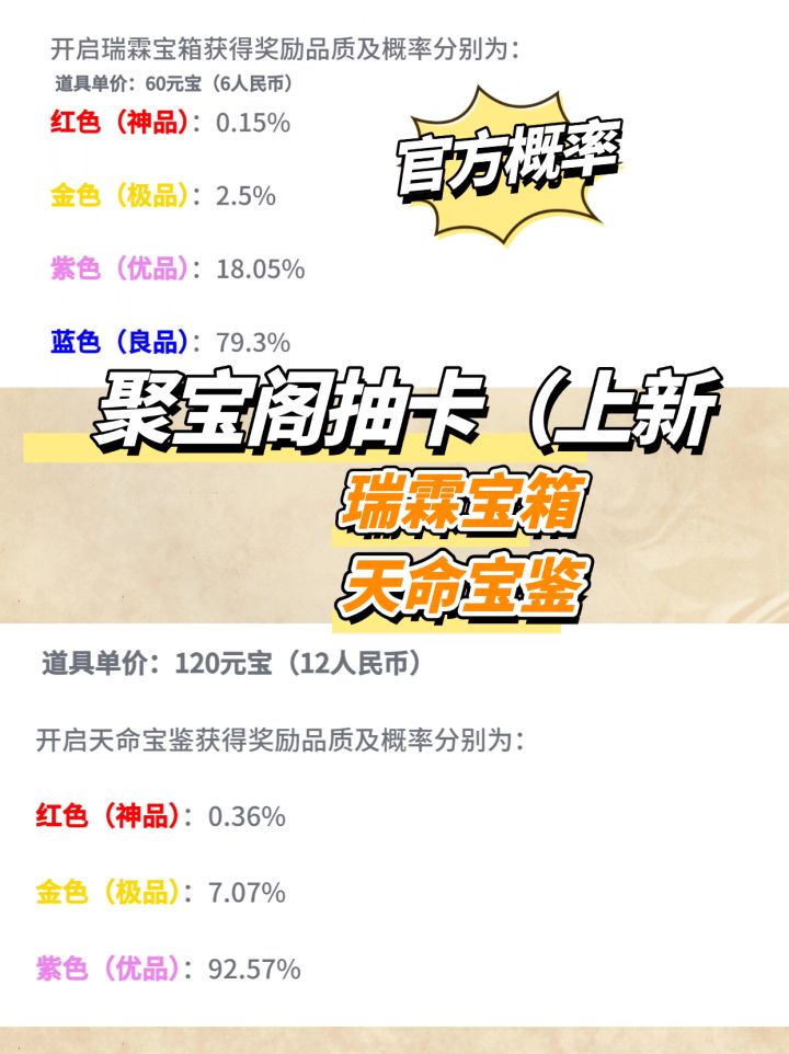 瑞霖宝箱和天命宝鉴的的价格不同,概率也不同🤷♀️