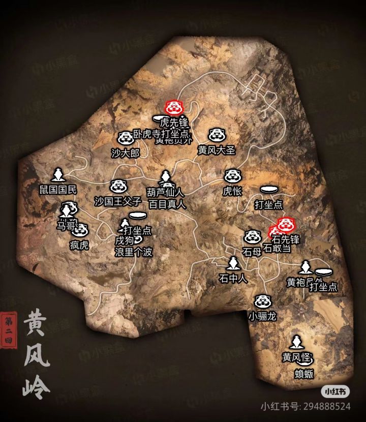 黑神话悟空第二回到第六回6张地图已更新(地图取自小黑盒小程序),相关点位包括头目、妖王、传送点等等