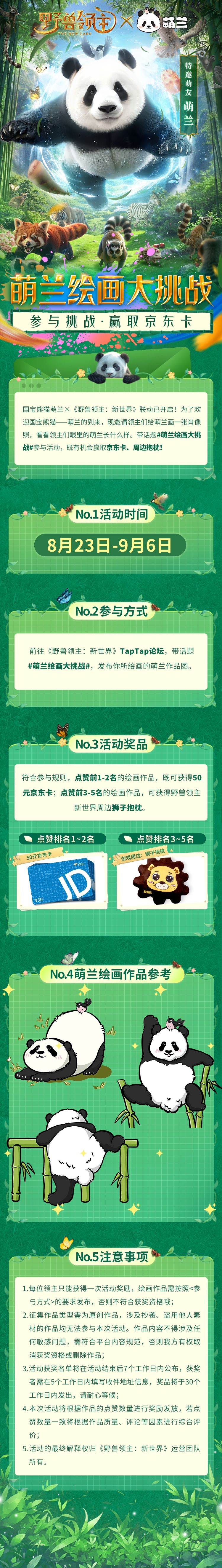 #萌兰绘画大挑战,发布你所绘画的大熊猫萌兰,就有机会领取京东卡、周边抱枕哦!(具体规则请看活动图)。