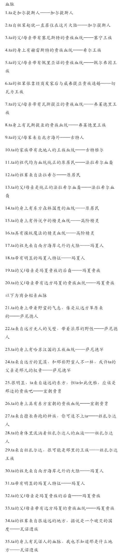 血统词条: