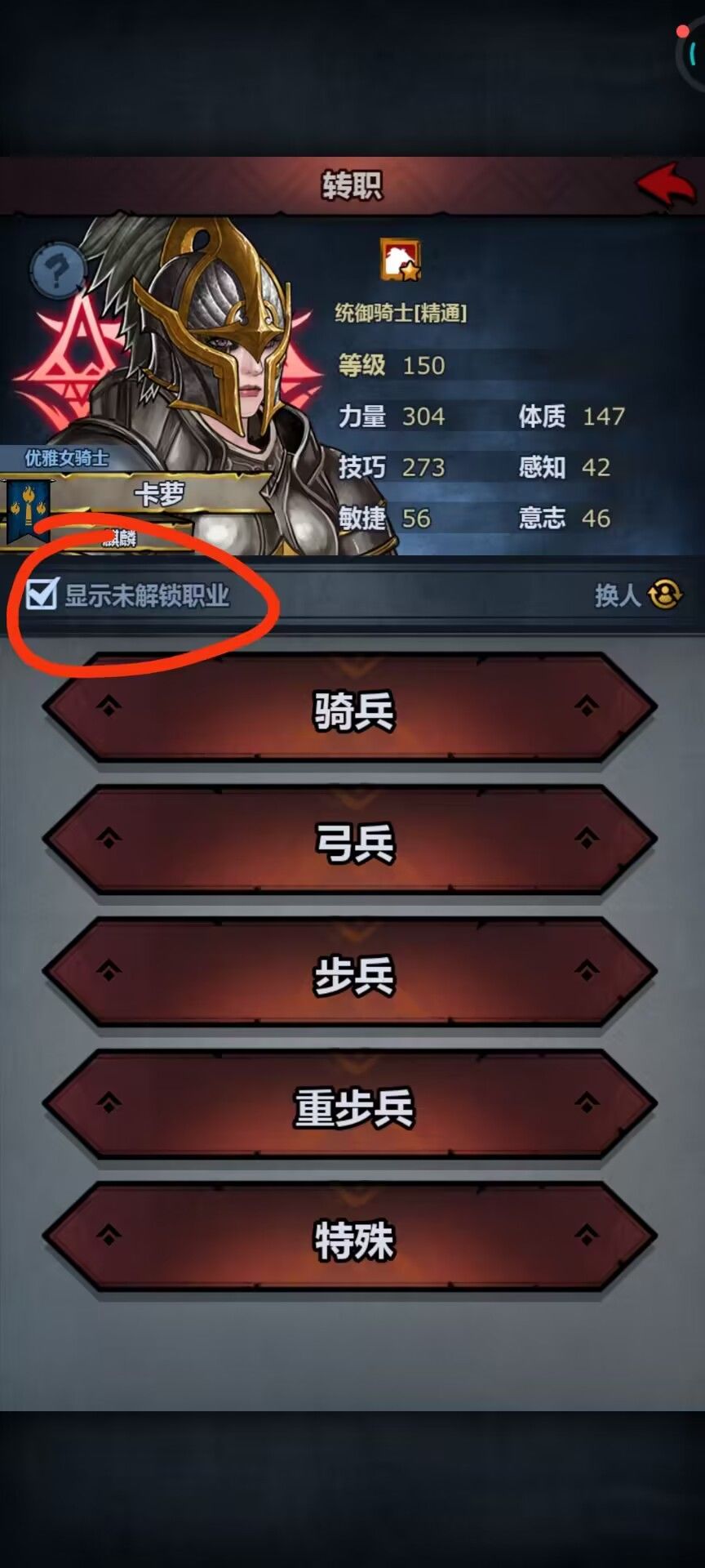 另外,转职界面可以勾选显示所有职业来看看自己有哪些职业是还没有解锁的,同时也能看到未解锁职业的解锁条件。