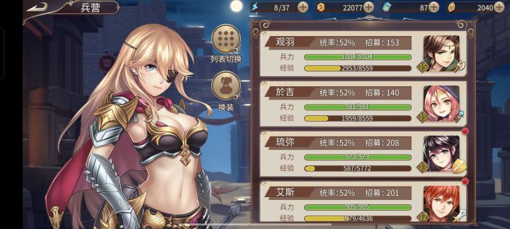 2.这个游戏对新人很不友好,6级遇到的新手村杀手boss鸢飞,据论坛大佬说改过技能,导致新手前期毒c于吉放后排直接开战被秒,放前排会使鸢飞直接开大使三员主将一死二残直接失败,前期6级玩家只有御四家,且不能通过训练场提升兵量也就是血量上限,导致容错率极低,劝退指数极高。