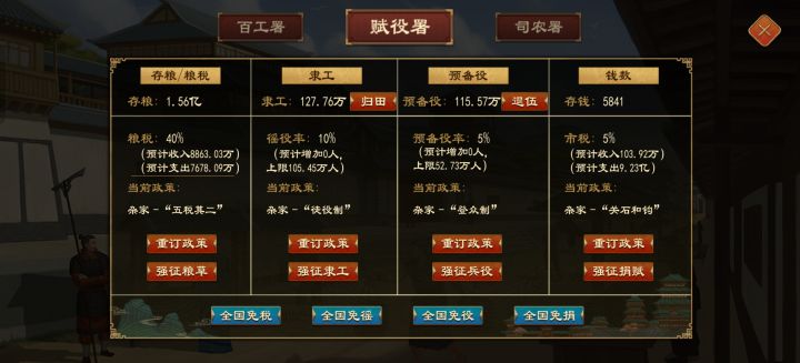 ,之前改革的那六十君威还是外交凑出来的,现在改不回去了,我想着先把陪都都废了君威恢复再把俸禄改回来 结果财政崩溃进度才1/36的时候全国叛心都100了,
