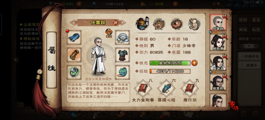 随从自学无瑕,给前排整上乘棍,最优碎岳(六扇门专属),拘魂阁随便整个便宜的就可以了,70级就用镇派无瑕棍法了