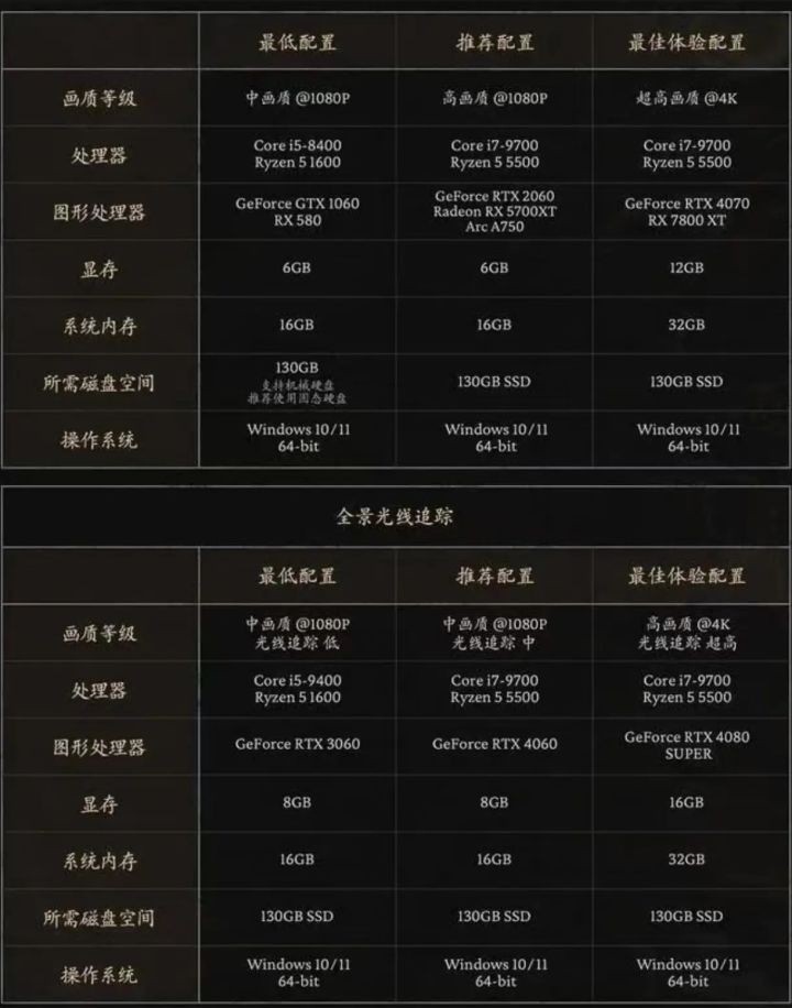 总结一下,黑悟空的配置需求和主流的3A相差不大