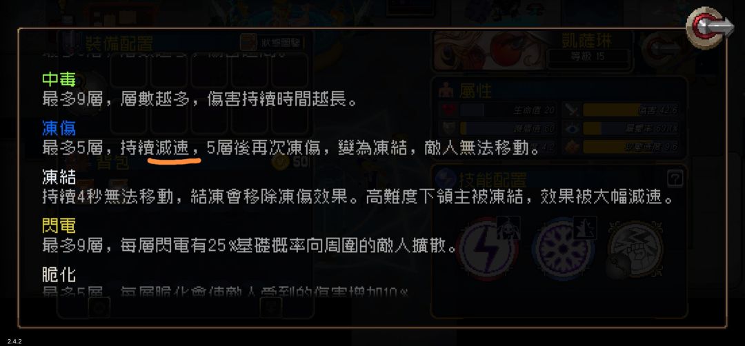 次要:30%概率一层冻伤(保证稳定有减速效果减少生存压力)