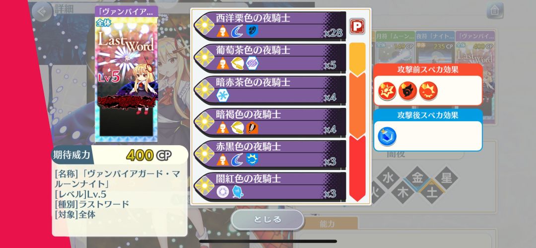 特攻:13段,妖精、巫女、月之民、太阳关联者,