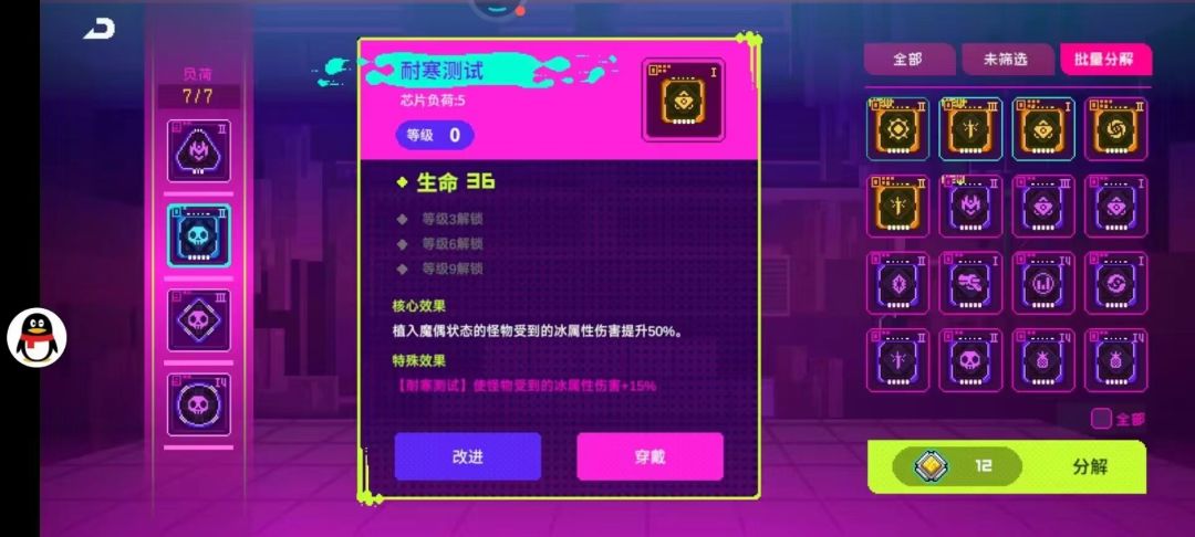 【耐寒测试】使怪物收到的冰属性伤害+15%,正确的词条放在正确的芯片上
