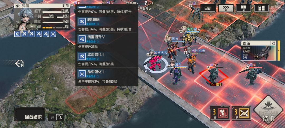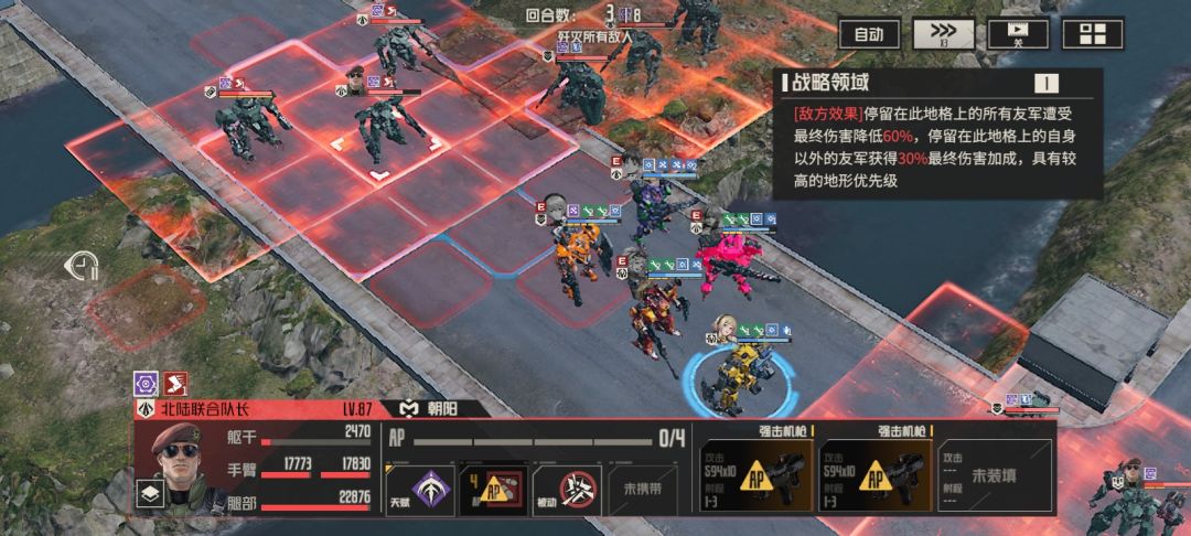 注意事项:一、第四回合用真嗣的回AP技能,真嗣待机后玛丽再传BUFF,最后一回合直接传。二、罗娜的修理技能尽量给真嗣帮真嗣回AP(真嗣三AP或以下),真嗣除非能保证收割或下回合收割,否则一AP平射可以不打留下回合用穿透射击打。三、零只要不死就尽量爆盾,爆盾能破大盾兵的盾牌,爆盾后用脸抗(下回合死了就悔棋让罗娜加一口)。