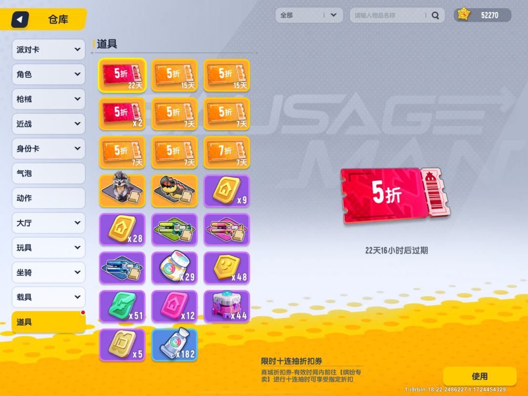 三张缤纷+一张近战武器直购5折+一张全场直购7折